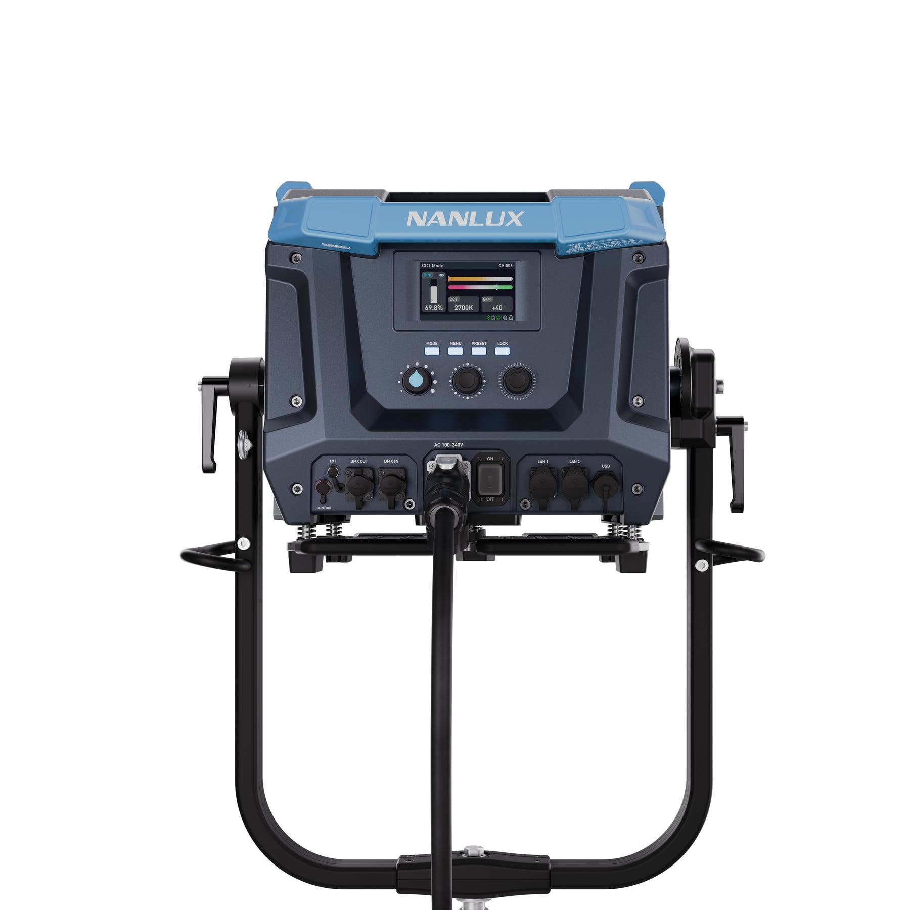 NANLUX is always committed to an efficiency-oriented vision in product design, aiming for high efficiency and simple operation on set. The Evoke 5000B integrates the lamp head, control unit, and power supply into one fixture, significantly reducing both the total weight and size compared to solutions with separate units. With its all-in-one lamp and just one cable, fixture management is simpler and more organized, improving efficiency for both on-set and transportation.